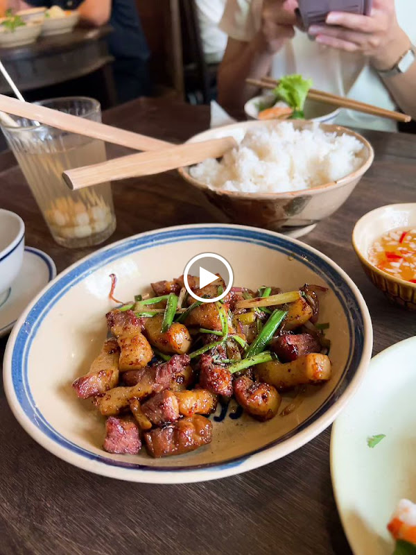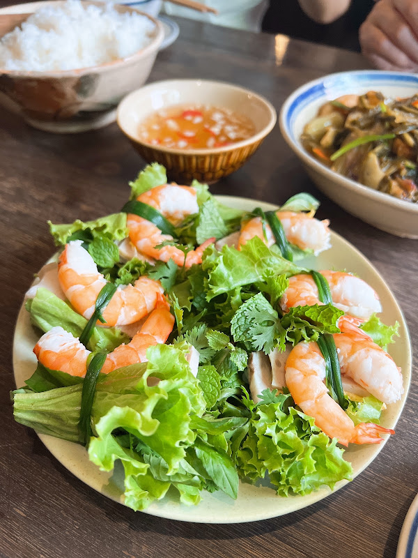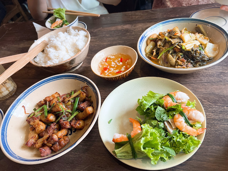 Đồ ăn menu truyền thống Việt Nam rất đa dạng, có loại mâm sẵn hoặc gọi món. Mình khá thích nước chấm quán pha, món cuốn tôm ăn rất cuốn, thịt rang cháy cạnh đậm đà giòn thơm,…