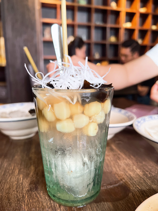 Sắp xếp bàn ghế tủ gỗ mang lại cho mình nhiều cảm xúc, như bước về thủa còn bé; Ngồi tại sảnh chờ, nhâm nhi chén nước vối tự thấy nhớ hồi nhỏ hay được uống chè tươi, nước vối. Cũng rất lâu rồi mình mới xơi cơm bằng đũa cả.