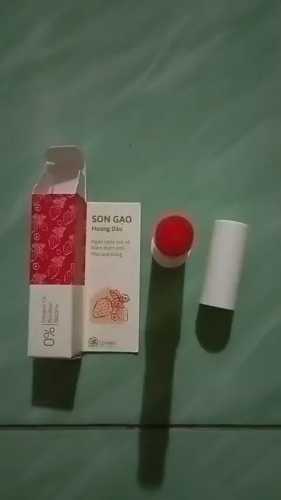 Son gạo hương Dâu là son dưỡng 100% thành phần thiên nhiên, lành như cơm đến mức có thể ăn được. Son với vị dâu ngọt ngào và chút màu khoáng thiên nhiên, lên màu môi ửng hồng xinh yêu. Cực thích hợp với những bạn ngại tô màu rực rỡ, đồng thời giúp hồng môi, ngăn ngừa thâm nẻ.