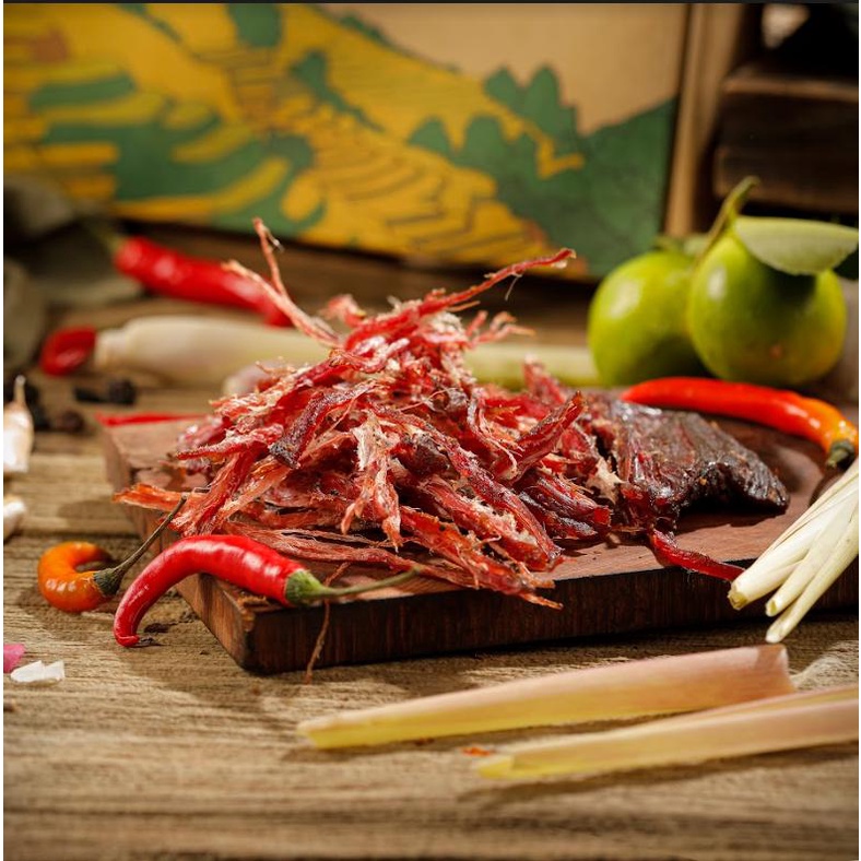 Xu hướng các món ngon trên rừng kéo ầm ầm về phố đang ngày một tăng, một trong số đó là thịt lợn gác bếp Tây Bắc. Đây là một món đặc sản Tây Bắc hùng vĩ, thịt heo gác bếp làm người ta đắm say chỉ sau một lần thưởng thức. Với mong muốn giúp thực khách ở giữa chốn đô thị phồn hoa được sống trong hương vị núi rừng, HUHO FOOD đã cho ra đời sản phẩm thịt gác bếp Huyền Huho đúng chuẩn truyền thống của đồng bào dân tộc. Thịt lợn sấy HUHO FOOD làm từ lợn bản của Tây Bắc, ớt băm, muối, gừng băm, tỏi băm, mắc khén, hạt dổi, lá rau rừng. Không chất bảo quản, chất tạo mùi, chất phụ gia độc hại. Nét độc đáo trong hương vị, sự mới lạ và lành tính cho sức khỏe, món ăn này rất thích hợp được dùng làm quà biếu cho bạn bè và người thân.