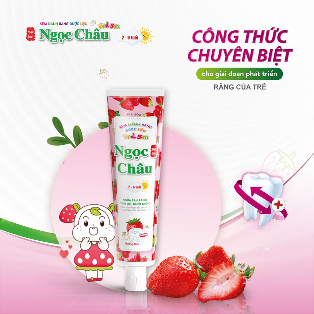 Kem đánh răng dược liệu Ngọc Châu Trẻ Em dành cho trẻ em từ 2 - 6 tuổi với công thức chuyên biệt được nghiên cứu phù hợp cho từng giai đoạn phát triển răng của trẻ dưới sự tham vấn của các chuyên gia nha khoa.