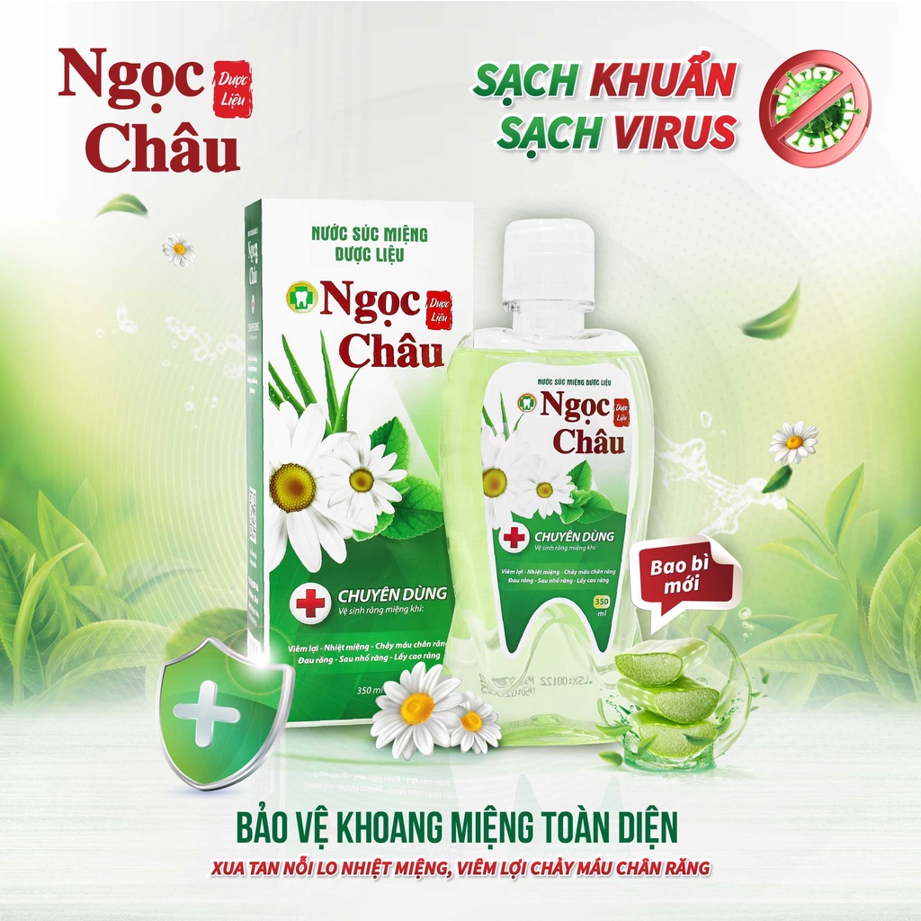 Được sản xuất trên dây chuyền công nghệ tiên tiến và tham vấn về chuyên môn bệnh học bởi các chuyên gia nha khoa. Các vị dược liệu trong Nước súc miệng Ngọc Châu được phối hợp khoa học giúp làm dịu khoang miệng, giảm dấu hiệu sưng đỏ, xót của nhiệt miệng, viêm lợi, chảy máu chân răng. Với vị dược liệu thơm mát nhẹ nhàng, và công dụng làm dịu nhanh chóng khoang miệng, rất phù hợp với những người đang hoặc bị tổn thương trong khoang miệng.