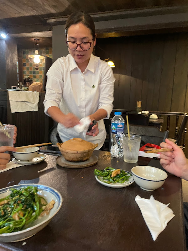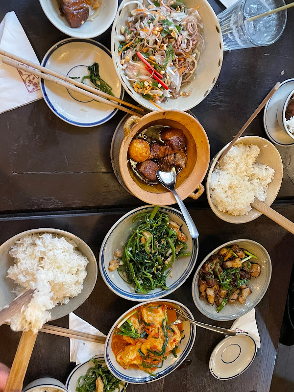 Last meal in Hanoi and absolutely loved it. We ordered stir fried morning glory, a roast pork dish, braised pork belly, banana blossom salad, meat stuffed tomato tofu. Everything was delicious! The restaurant was beautifully decorated and felt like you were transformed to a traditional-style home. The food served felt like home. It was on the pricier side, but worth it.